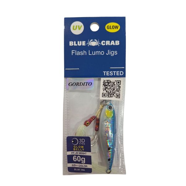 El Jig Blue Crab «Gordito» combina un diseño compacto y versátil respecto al resto de jigs clásicos. Diseño único: Más corto y ancho que otros jigs de plomo, lo que le confiere un movimiento totalmente diferente al clásico jig fino y alargado. Versátil: Apto para todo tipo de jigging, especialmente para casting, por su capacidad de alcanzar grandes distancias de lance. GLOW UV: Colores con efecto holográfico y un recubrimiento GLOW situado en la barriga, junto con UV para una máxima visibilidad incluso en condiciones de poca luz.