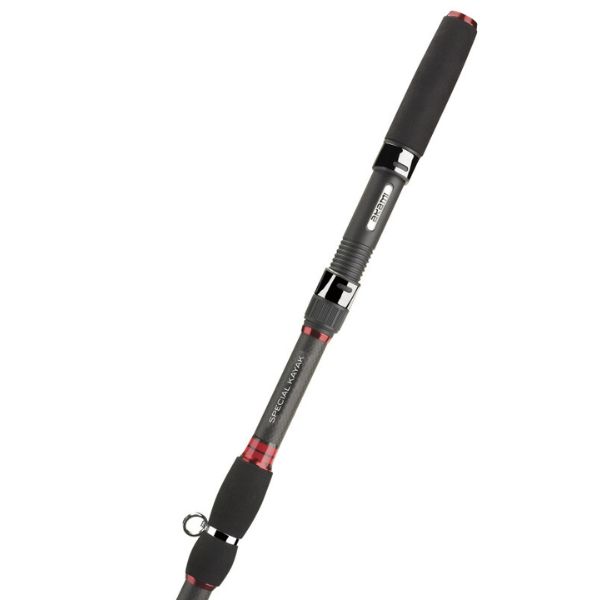 Caña fabricada en carbono al vacío con puntera maciza flexi-glass. Con esta nueva técnica de fabricación se le confiere al producto una resistencia y flexibilidad en la acción de pesca, consiguiendo detectar cualquier picada. Este modelo va equipado con anillas Fuji. Incorpora además talón de combate y una hebilla de sujeción de seguridad.
